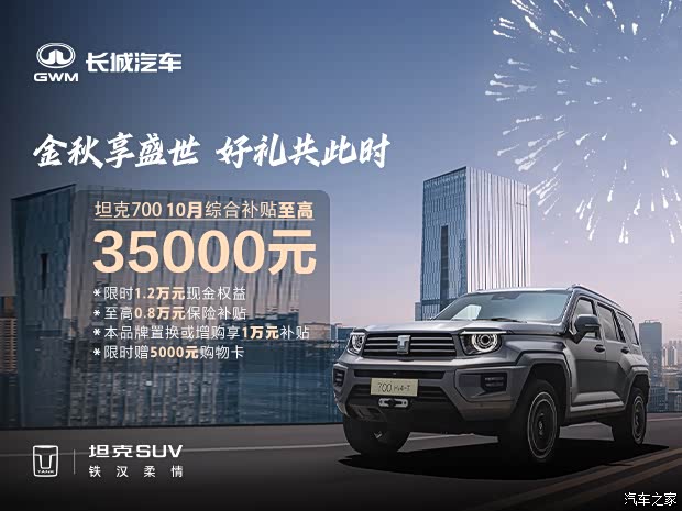 坦克700 10月购车权益: