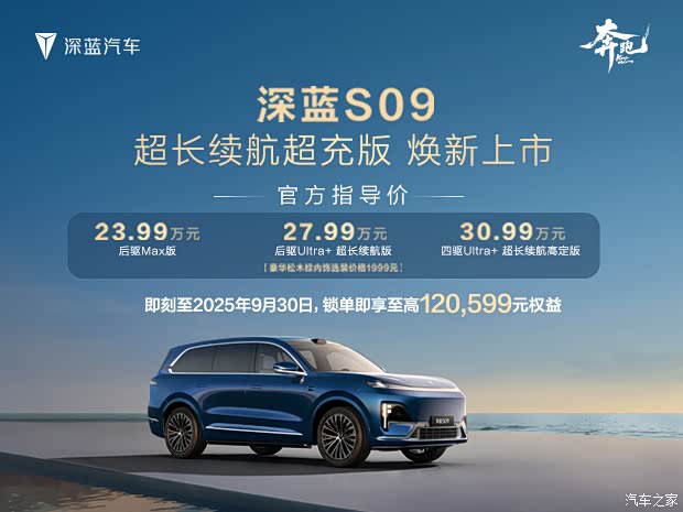 | 深蓝S09 2025款 四驱Ultra+ 高定版 | 30.99 | ↓ 1.00 |