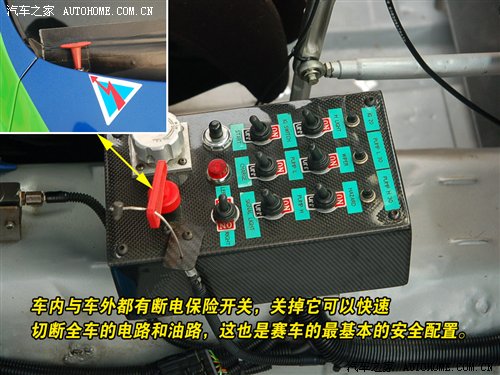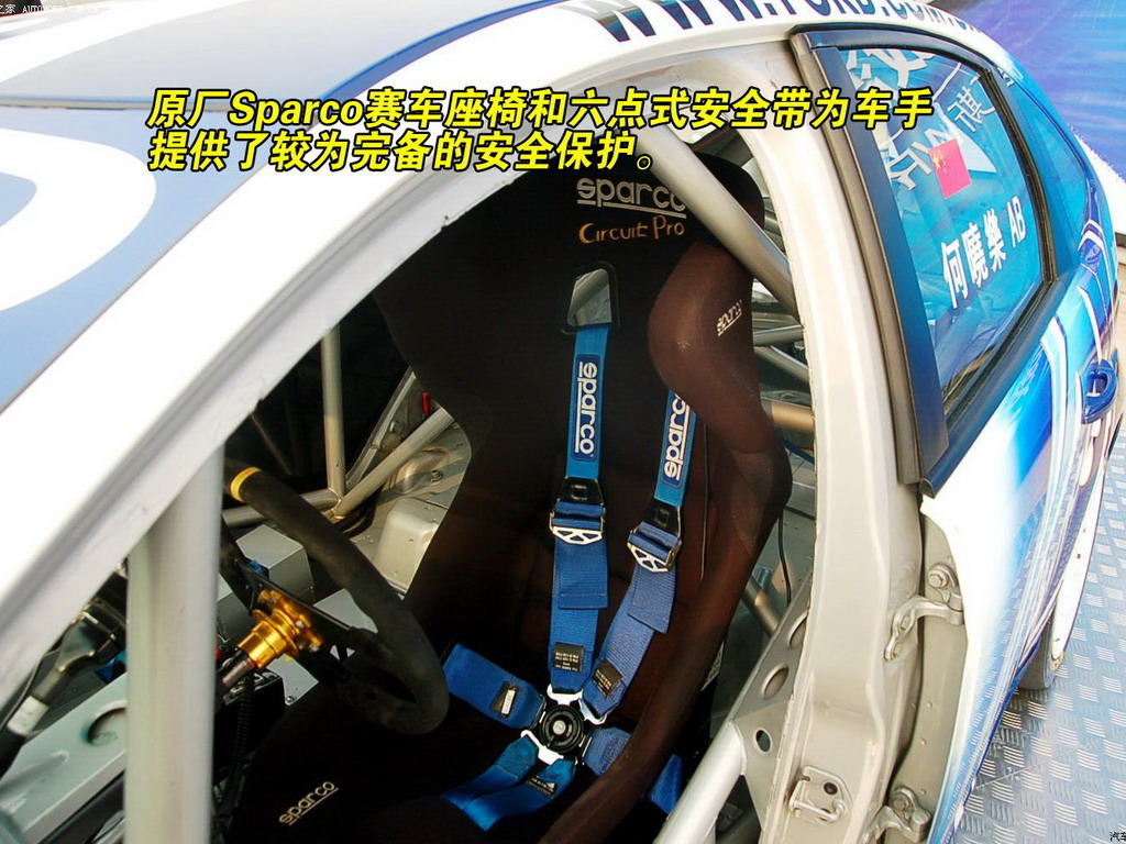 强化后的16寸赛车轮圈,配以锦湖215/50/R16高性能赛车轮胎,虽然外观不够夸张,但可以给赛车提供足够的抓地力。另外减轻赛车重量也是最关键的一环,包括安全气囊、空调在内的所有电子设备,以及车厢内多余的电子设备都要拆除;减重完成后就是要加装各种赛车专用的设备了,包括筒形座椅、碳纤维仪表台、门内板等等,当然为了保护车手最重要的防滚架是必不可少的,并且还要符合中国汽车运动联合会的相关规定。
