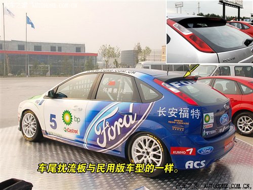 这次长安福特并没有安排我们试驾和试乘这款参加全锦赛的福克斯赛车,所以编辑只好以静态的方式介绍一下这款在今年帮助长安福特车队获得2000cc组别冠军的赛车。