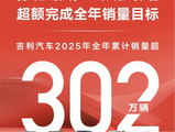 2026年冲击345万辆 吉利汽车2025年全年销量超302万辆