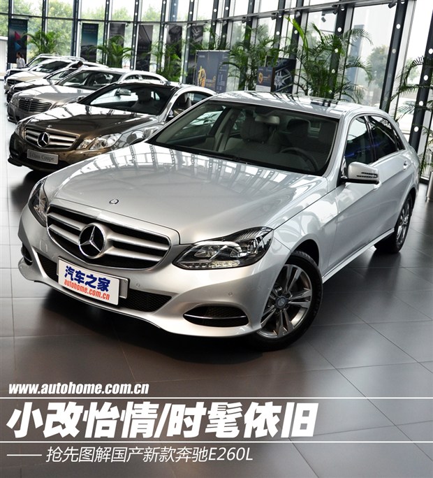 [汽车之家 新车图解] 今年初,梅赛德斯-奔驰对旗下E级轿车进行了中期改款,主要针对老款车型的外观和内饰做了细微调整,紧接着4月份的上海车展上,我们就见到了改款之后的国产新款奔驰E级长轴距车型。随着新车在华越来越多信息的曝光,也预示着新款奔驰E级距离上市应该会很近了,有消息称新车将于今年9月在成都国际车展上正式上市。不过在此之前,我们又在4S店见到了新款奔驰E260L车型的身影,相信在车展之前,您一定还想仔仔细细的打量它一番。