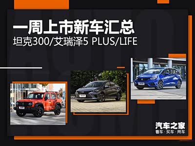 [汽车之家 资讯] 大家好,又到了上市新车汇总时间,本周上市的新车包含有WEY坦克300、奇瑞艾瑞泽5 PLUS、LIFE等,这里面是否有您心仪的车型...