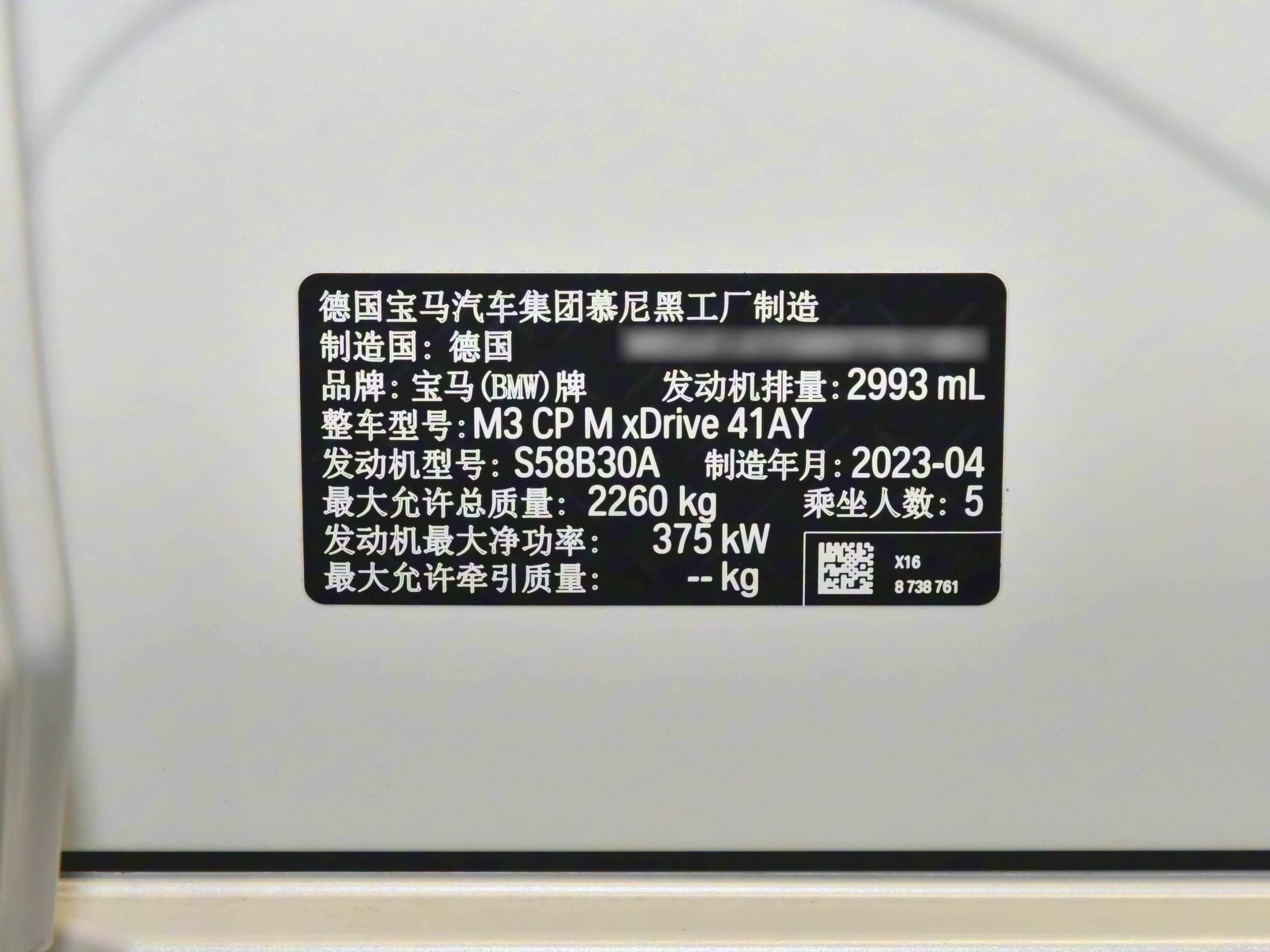 2023款 M3四门轿车 M xDrive 雷霆版