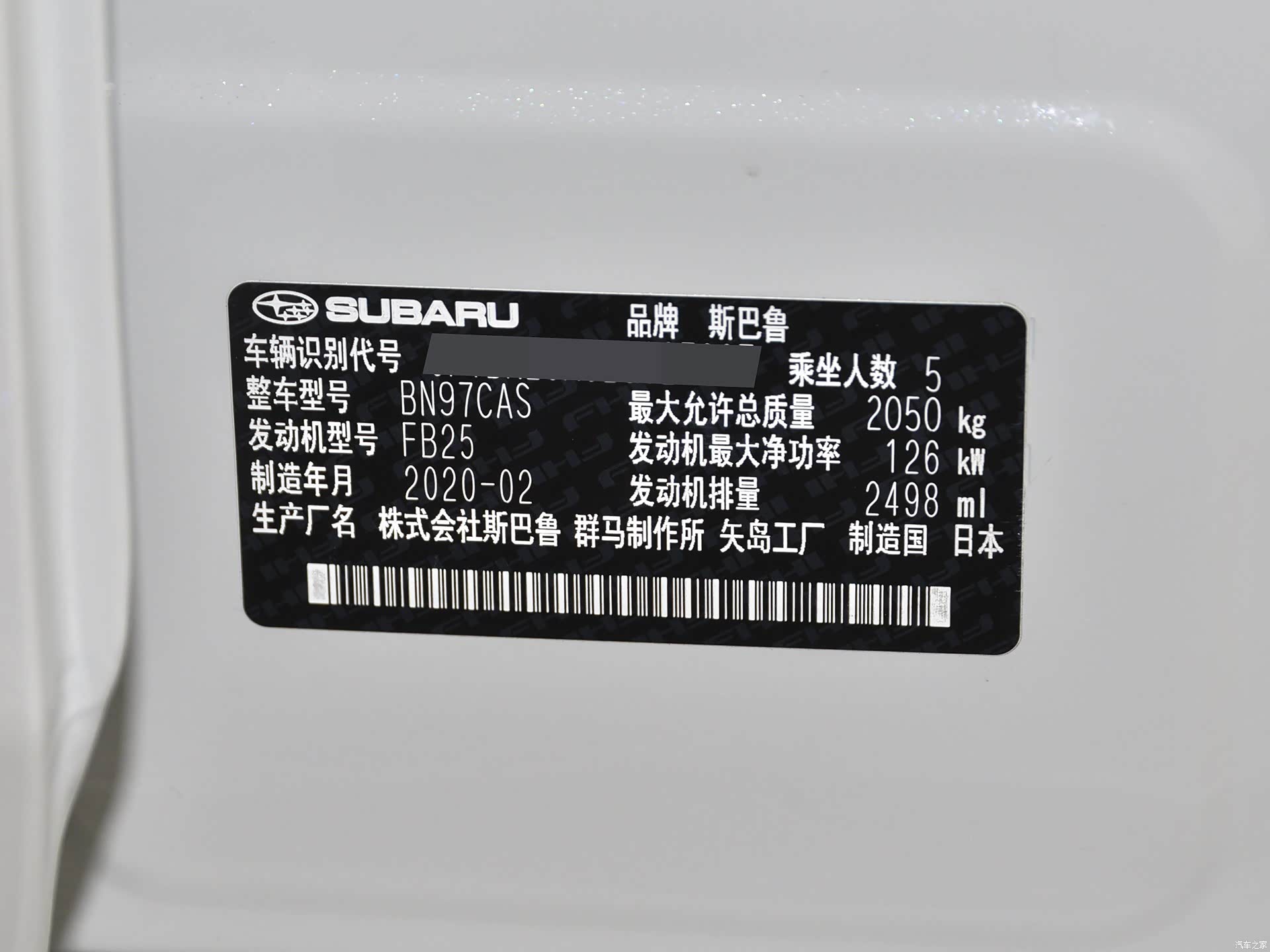 2020款 改款 2.5i 全驱荣耀版 EyeSight