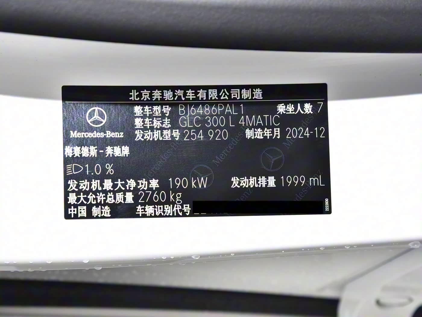 2025款 GLC 300 L 4MATIC 动感型 7座
