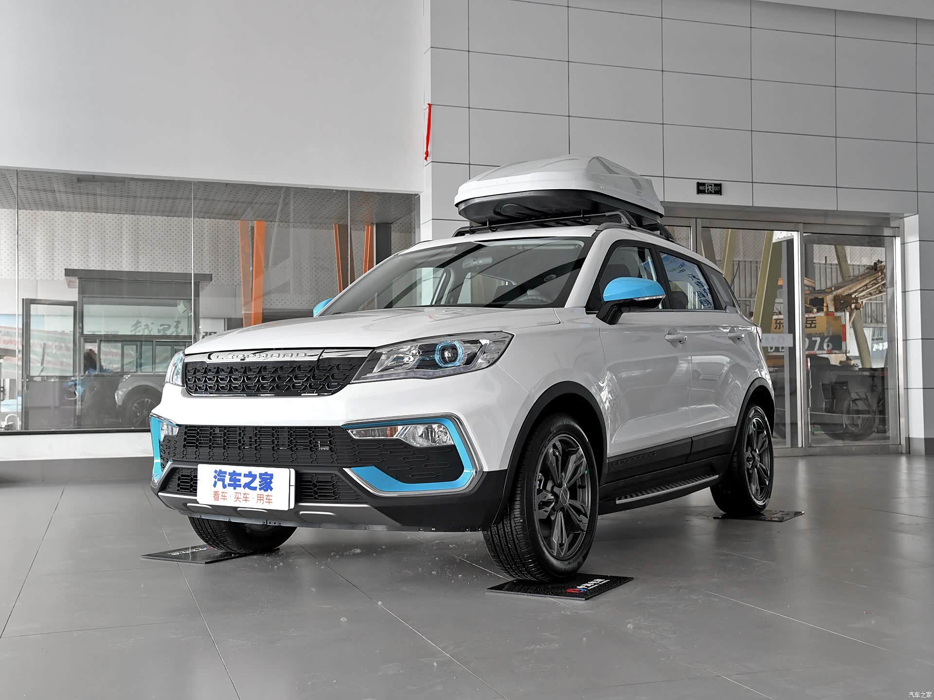猎豹CS9新能源拥有两种风格的外观,一种是跟燃油版车型一致的车身同色外观(静态展示车型),另一种则是在原基础上增加了些许蓝色元素的外观(动态展示车型)。显然拥有蓝色元素的款式更能彰显它新能源的身份,但相比之下我更喜欢车身同色的款式,看起来更加自然。