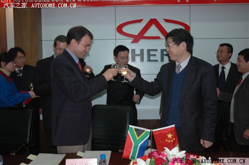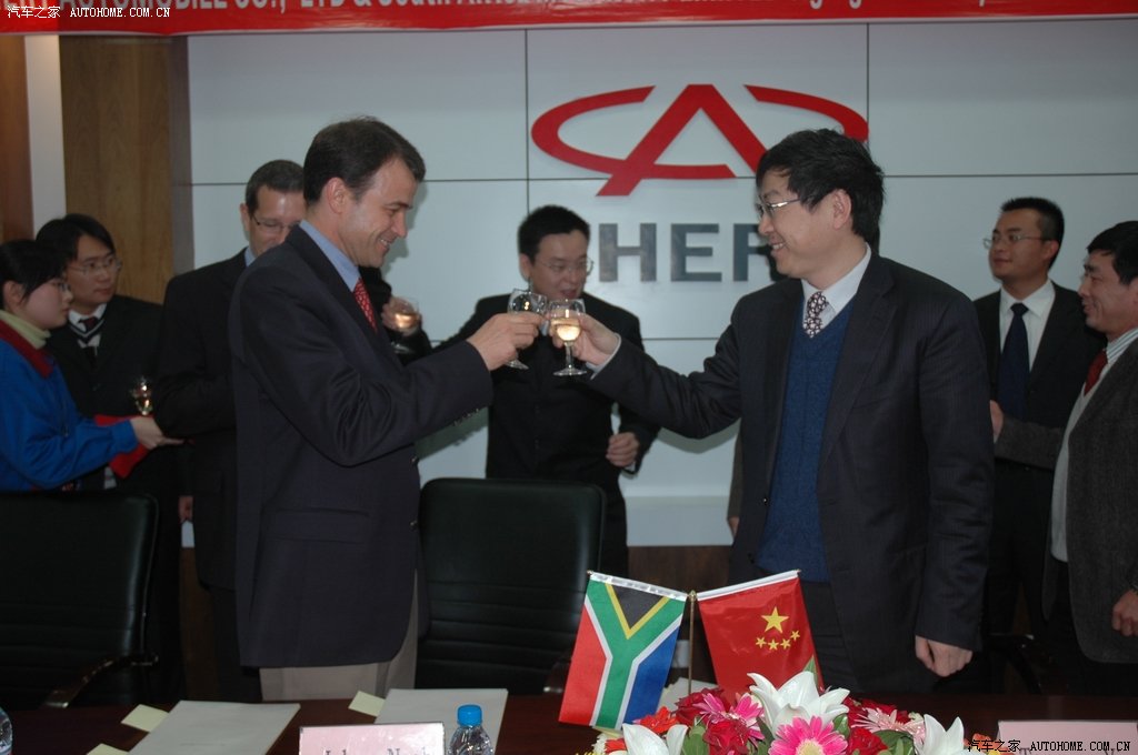 新闻稿 · 0浏览·2007-12-14 11:032007年12月8日,奇瑞汽车与南非McCarthy公司在安徽芜湖签署了《南非地区奇瑞品牌代理协议》。奇瑞汽车有限公司董事长兼总经理尹同耀、McCarthy公司执行总监Jolyon Nash分别代表双方在协议书上签字。这是继2007年11月高级防护车出口南非以来,奇瑞汽车在南非市场的又一新的突破。