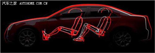 (上图红色线条为08新CTS侧面轮廓,白色线条为老款CTS侧面轮廓,很明显,空间的增加让后排乘客更加舒服)