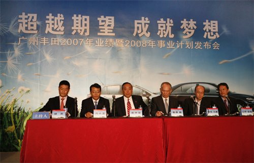 2007年12月25日,广州丰田汽车有限公司在深圳召开了2007业绩暨2008年事业计划发布会。2007年,广州丰田二度上调产销规划,最终以17万辆的年产销目标向中高级轿车市场年产销量纪录发起挑战。截至目前,凯美瑞1-11月份的累计销量已突破15.3万辆,从目前市场销售形势以及厂方提供的订单数据情况来看,17万辆的年产销目标将顺利实现。在2007年的成就之上,广州丰田对08年做出了产销21万辆的规划,同时,在08年度中期雅力士将正式投产上市。