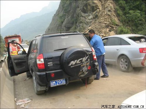 成都西物值班人员接到川M2936*车主张先生焦急如焚的求助电话。根据车主的电话断断续续的描述,5月12日下午张先生返回成都的途中,车行驶至都江堰重灾区国道317线紫坪铺水库段时(据都江堰城区约20km处),地震发生了。地震产生的山体滑坡将张先生驾驶的车辆阻断在国道公路上,后来余震中飞石将车辆砸坏,车辆再也无法启动。被困期间,由于通讯中断,张先生也无法第一时间和服务站取得联系。直到工程机械打通车辆出险受困地点的道路,脱险的张先生才立刻想到了奇瑞成都西物服务站,并迅速与服务站取得联系。