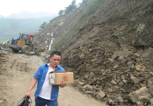 终于和车主张先生再次取得联系。服务站1名驾驶员和3名维修人员驾驶奇瑞救援服务车,载着专业的维修设备和必要的水和食品直奔都江堰重灾区。
