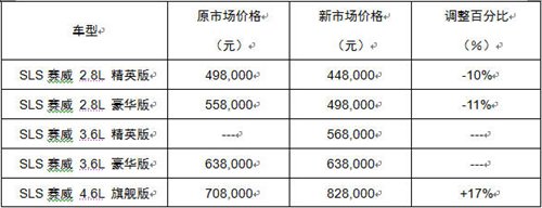 调整情况:凯迪拉克SLS赛威畅销车型价格不变,2.8车型进入45万以内价格区