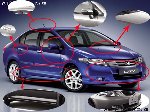 细看NEWCITY很多地方经过重新设计,更加人性化,更符合人们的审美观念。前脸的包围类似第八代雅阁,难怪有人称新CITY为小雅阁;车身侧面包围更加运动化,比较类似跑车,车门保护饰条较老款更加精致,与车门更好的融为了一体。