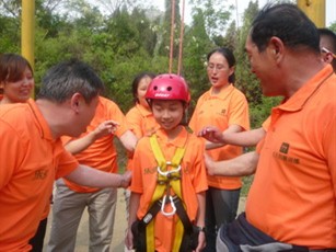 “背摔”又叫“信任倒”,这是拓展训练中最具典型意义的项目之一。当人站在高高的跳台上直挺挺地向后倒下的时候,在台下方的同事会用手托起成一个“人床”把台上摔下的人接住,这就最考验彼此间的信任。轮到我时,我身体也在颤抖,心里想会不会倒下去后没人接或接不住呢?后来,我一鼓作气倒了下去,我最终被队友稳稳的接住了。然后才恍然大悟,原来这活动告诉我要相信团队的力量,增加彼此的信任。车友们那种死守阵地,视死如归,精神高度集中的状态,台上车友就能抛开心中的疑虑放心地摔下去,完全体现了彼此间的默契与信任的力量。通过这样的训练项目有效地促进了同事间的沟通、信任,使大家能够相互了解,真诚相对,更让我感受到了乐驰大家庭集体的温暖……