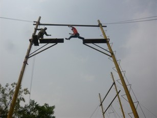 到达训练基地之后,在教练的指导下,我们分成三个小团队,各队由民意选出各自的队长及“队秘”,大家发挥创意,积极参与,设计队名、队歌、队旗、口号,增强了队员们的配合意识,培养了各员工的团队精神,让我们在实践中感受集体的力量,明确个人与集体的关系,认清个人在集体中的作用。在分队后,我们先后进行了如“背摔”、“高空断桥”及“高空单杠”等训练项目。下面与大家一起分享我参与这项训练的心得吧!