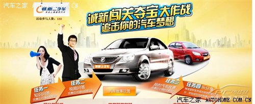 完成以上四项闯关任务,你就有机会其他参与活动的的网友争夺各种奖品。但是你要想获得凯越和乐风认证车的最终大奖您一定要比别人更勤奋,比别人更努力,比别人更新颖,当然,你也要比别人更"人多势众"!