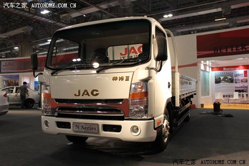 N Series高端轻卡(帅铃III)无疑是展场中商用车的最大焦点。N Series高端轻卡是江淮汽车针对高端物流市场需求,整合全球资源、融合当今国际领先的设计理念和最先进的技术平台,在全新平台上打造的最新一款世界级轻卡产品,是江淮汽车近50年轻卡制造经验的扛鼎之作。与传统轻卡相比,N Series高端轻卡充分借鉴了国际最领先的轻卡安全理念,率先在同级车型中配备了ABS和EBD,成为中国首款通过整车安全测试的轻卡产品。搭载的江淮汽车自行研发的4DA1发动机和康明斯发动机,采用德国Bosch电控高压共轨等多项国际先进技术,具备动力强、低油耗,低排放、低速高扭等特点,同时,对底盘悬架系统也进行了优化,极大地提升了承载性和舒适性。经过各种复杂环境的严格测试,无论从动力性、操控性、舒适性、环保性等方面,N Series高端轻卡都具备了国际水准,甚至表现更出色。此次参展的左置、右置两款车型是江淮汽车专门针对国际市场开发的新产品,满足了不同区域市场的需求,均代表了中国轻卡制造业的最高水平。