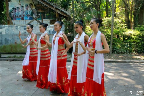 傣族的姑娘个个能歌善舞,她们穿着节日的盛装,跳着傣族的舞蹈、唱着傣族的民歌,来欢迎远道而来的游客。